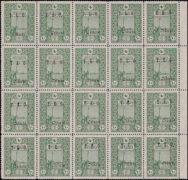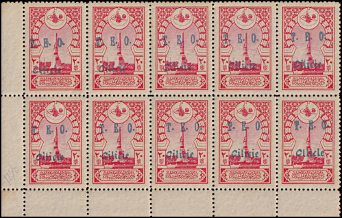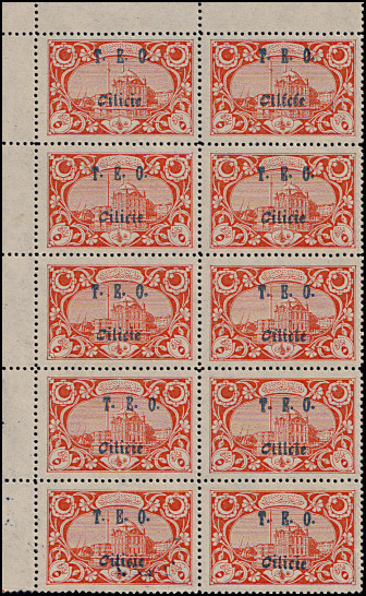 block of 10 with "TFF" 1st row right, "FIL" 3rd row right, low "C" in "Cilicie" 4th row left, "TLL" 4th row right, and low "CIL" in "Cilicie" 5th row right |