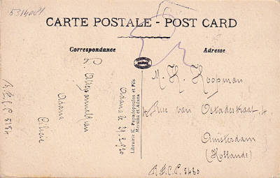 Foreign postcard from 29.02.1920 from Adana to Amsterdam (Netherlands) with censor stamp on front, franked with one postage stamp a 10 Para, two postage stamps a 5 Para and one postage
