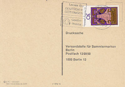 Inlandsdrucksache (1-20 g) vom 10.03.1977 (7. Periode) frankiert mit einer Marke a 30 Pfennig (=30 Pfennig) |