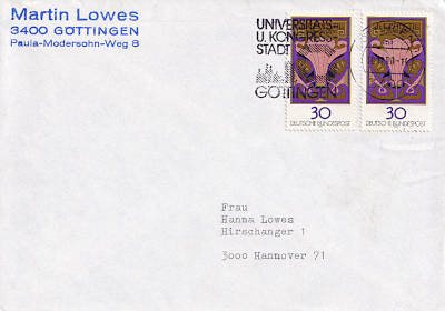 Inlandsbrief (1-20 g) vom 10.12.1980 (8. Periode) frankiert mit 2 Marken a 30 Pfennig (=60 Pfennig) |