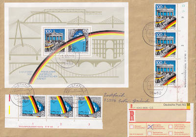 Inlandsbrief mit Einwurf-Einschreiben (51-500 g) vom 04.09.2000 (12. Periode) frankiert mit einem Block a 6 Mark (=6 Mark, 3 Brief 3 Einwurf-Einschreiben) |