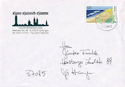 Inlandsbrief (1-20 g) vom 06.07.1996(11. Periode) frankiert mit einem Block a1 Mark (=1 Mark)