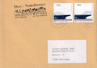 Inlandsbrief (21-50 g) vom 19.08.1997 (11. Periode) frankiert mit 2 Briefmarken a 1 Mark (=2 Mark) |