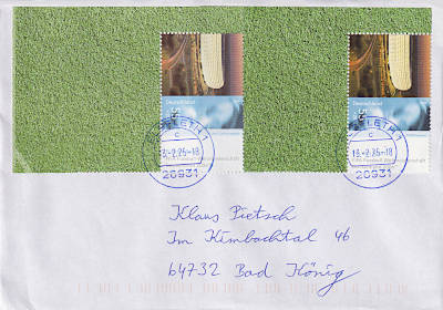 Inlandsbrief (21-50 g) vom 13.02.2025 (12. Periode) frankiert mit 2 Briefmarken a 55 Cent (=1,10 €) |