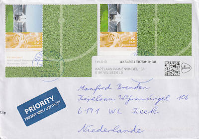 Auslandsbrief (1-20 g) vom 22.06.2021 (10. Periode) frankiert mit 2 Blocks a 55 Cent (=1,10 €) |