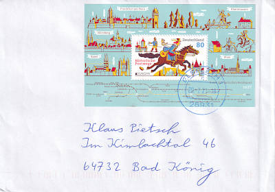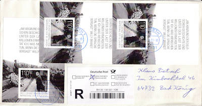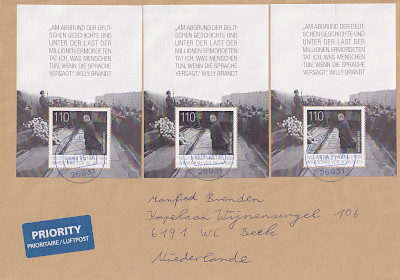 (1-20 g) vom 08.06.2021 (10. Periode) frankiert mit 3 Blocks a 1,10 € (=3,30 €,