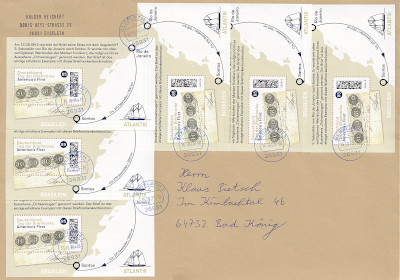 Auslandsbrief (21-50 g) vom 19.04.2024 (11. Periode) frankiert mit 2 Blocks a 85 Cent (=1,70 €) |