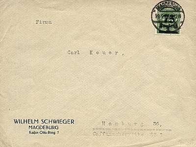 Inland cover (1-20 g) from 19.09.1923 (17. Period) franked with one stamp a 75 000 Mark on 400 Mark (=75 000 Mark) |