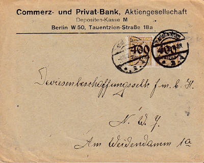 Inland printed matter (1-25 g) from 09.10.1923 (19. Period) franked with one stamp a 400 000 Mark on 40 Pfennig (=400 000 Mark) |