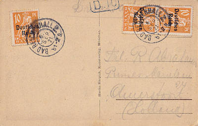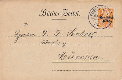 Inland book order (1-50 g) from 03.09.1920 (5. Period) franked with one stamp a 10 Pfennig (=10 Pfennig) |