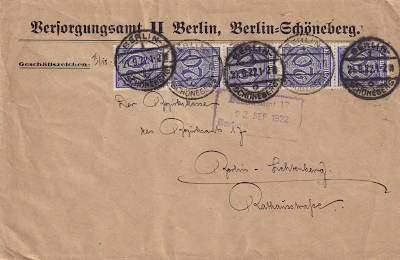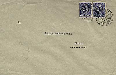 Local cover (1-20 g) from 04.08.1921 (6. Period) franked with 2 stamps a 20 Pfennig (=40 Pfennig) |