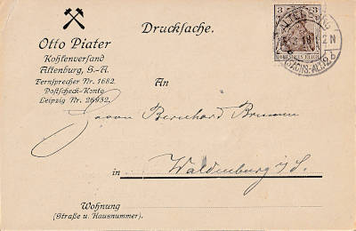 Inland printed matter (1-50 g) from 16.03.1918 (2. Periode) franked with one stamp a 3 Pfennig (=3 Pfennig)