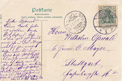 Inland postcard from 03.08.1906 (1. Period) franked with one stamp a 5 Pfennig (=5 Pfennig) |