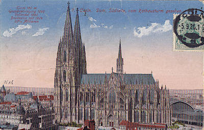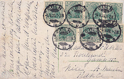 Foreign postcard from 05.09.1920 (5. Period) franked with 8 stamps a 5 Pfennig (=40 Pfennig) |