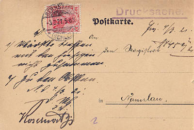 Inland printed matter (1-50 g) from 03.03.1921 (5. Period) franked with one stamp a 10 Pfennig (=10 Pfennig) |
