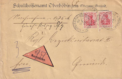 Inland cover with cash on delivery (1-20 g) from 18.09.1915 (1. Period) franked with 2 stamps a 10 Pfennig (=20 Pfennig, 10 cover 10 cash on delivery) |