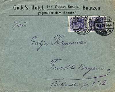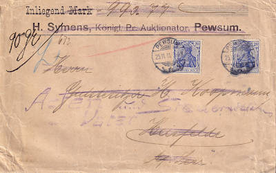 < 75 km) from 25.11.1911 (1. Period) franked with 2 stamps a 20 Pfennig (=40 Pfennig, 20 cover 20 value)