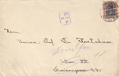 Foreign cover (1-20 g) from 02.08.1920 (5. Period) franked with one stamp a 40 Pfennig (=40 Pfennig); to Austria the inland fee was valid |
