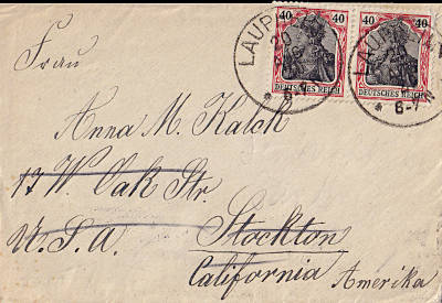 Foreign cover (1-20 g) from 20.08.1920 (5. Period) franked with 2 stamps a 40 Pfennig (=80 Pfennig) |