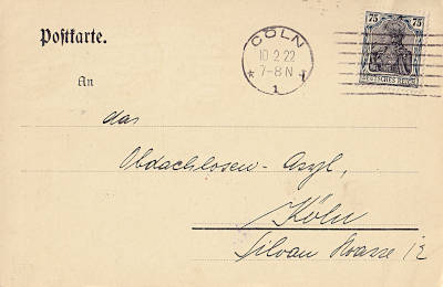 Local postcard from 10.02.1922 (7. Period) franked with one stamp a 75 Pfennig