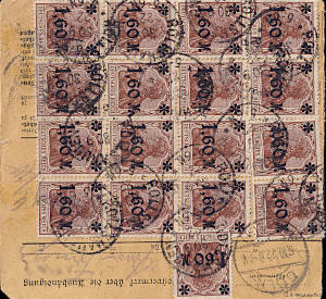 Inland cover with registeration (1-20 g) from 15.11.1921 (6. Period) franked with one stamp a 1,60 Mark on 5 Pfennig (=1,60 Mark, 0,60 cover 1 registeration) |