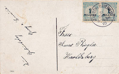 Foreign postcard up to 5 words from 31.10.1923 (21. Period) franked with 2 stamps a 1 Million Mark (=2 Million Mark) |