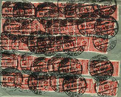 Foreign cover (481-500 g) from 25.10.1923 (21. Period) franked with 39 stamps a 10 Million Mark (=390 Million Mark)