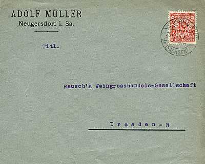 Inland cover (1-20 g) from 29.10.1923 (21. Period) franked with one stamp a 10 Million Mark (=10 Million Mark)
