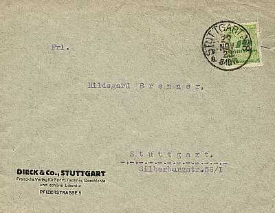 Local cover (1-20 g) from 27.11.1923 (26. Period) franked with one stamp a 10 Billion Mark (=40 Billion Mark) |