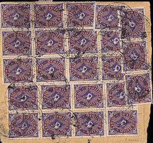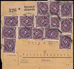 Auslandsbrief (1-20 g) vom 10.01.1923 (11. Periode) frankiert mit 4 Marken a 20 Mark (=80 Mark) |