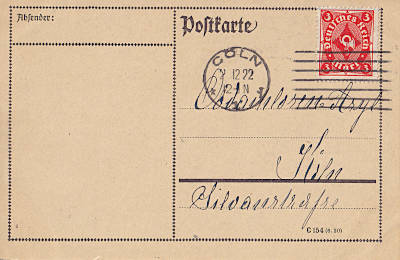 Local postcard from 02.12.1922 (10. Period) franked with one stamp a 3 Mark (=3 Mark)