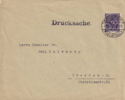 Inlandsdrucksache (1-25 g) vom 27.06.1923 (13. Periode) frankiert mit einer Marke a 20 Mark (=20 Mark) |