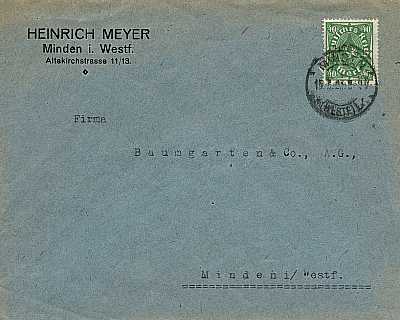 Ortsbrief (1-20 g) vom 15.05.1923 (13. Periode) frankiert mit einer Marke a 40 Mark (=40 Mark) |