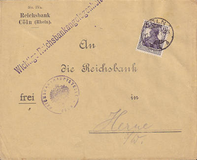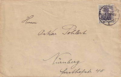 Inland cover (1-20 g) from 25.07.1919 franked with one stamp a 15 Pfennig (=15 Pfennig) |