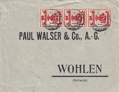Foreign cover (1-20 g) from 08.11.1919 franked with 3 stamps a 10 Pfennig(=30 Pfennig)