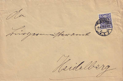 Inland cover (1-20 g) from 30.01.1920 franked with 2 stamps a 10 Pfennig (=20 Pfennig) |