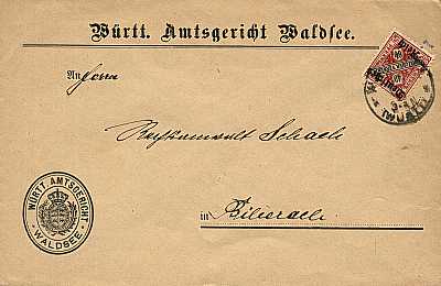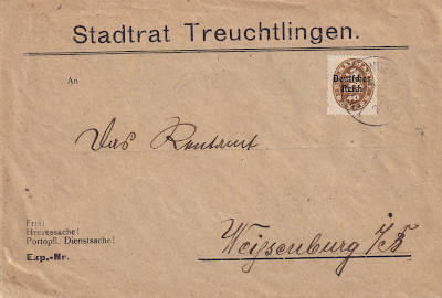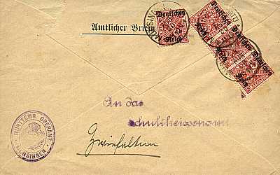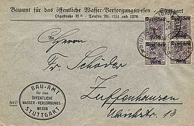 Inland cover (1-20 g) from 24.08.1920 franked with 4 stamps a 10 Pfennig (=40 Pfennig) |