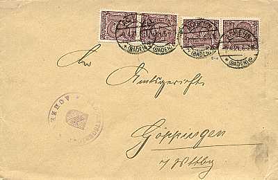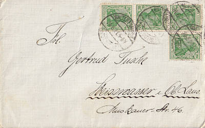 Inland cover (21-100 g) from 24.06.1921 franked with 4 stamps a 20 Pfennig (=80 Pfennig) |