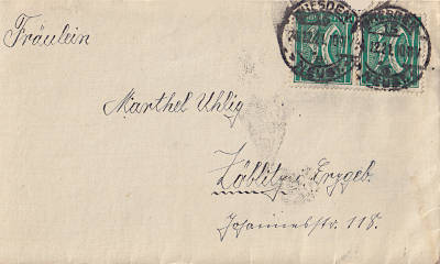 Inland cover (1-20 g) from 10.07.1921 franked with 2 stamps a 30 Pfennig (=60 Pfennig) |