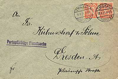Inland cover (1-20 g) from 16.07.1921 franked with 6 stamps a 10 Pfennig (=60 Pfennig) |