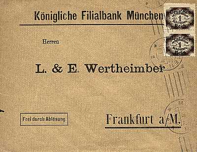 Inland cover (1-20 g) from 05.01.1922 franked with 2 stamps a 1 Mark (=2 Mark) |