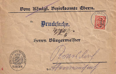 Inlandsdrucksache (1-50 g) vom 22.02.1922 frankiert mit einer Marke a 50 Pfennig (=50 Pfennig) |