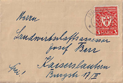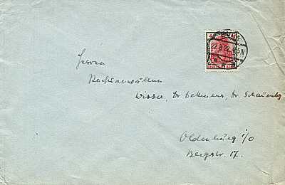 Inland cover (1-20 g) from 14.07.1922 franked with one stamp a 3 Mark (=3 Mark) |