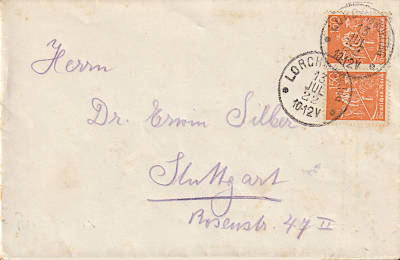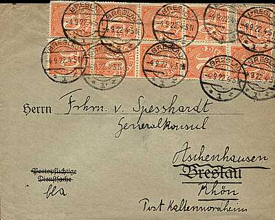 Inland cover (1-20 g) from 17.07.1922 franked with 10 stamps a 30 Pfennig (=3 Mark) |