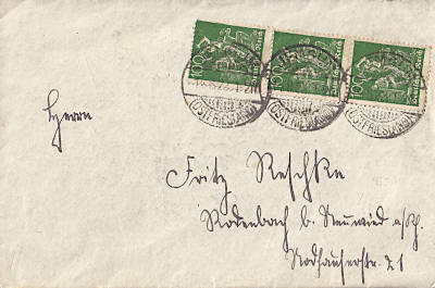 Inland cover (1-20 g) from 26.07.1922 franked with 3 stamps a 1 Mark (=3 Mark) |