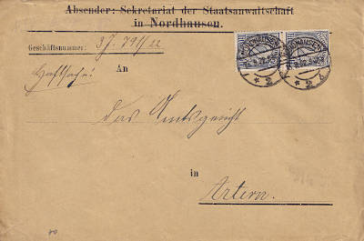 Inland cover (1-20 g) from 04.09.1922 franked with 2 stamps a 1½ Mark (=3 Mark) |