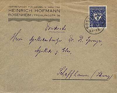 Foreign printed matter (1-50 g) from 20.10.1922 franked with one stamp a 4 Mark (=4 Mark)