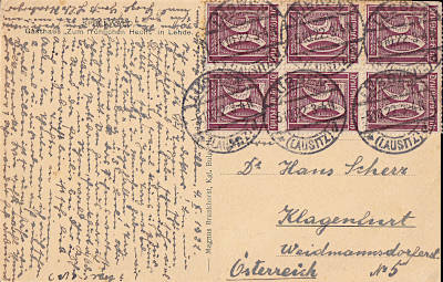 Foreign postcard from 05.10.1922 franked with 6 stamps a 50 Pfennig (=3 Mark)