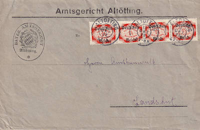 Inland cover (21-100 g) from 08.11.1922 franked with 4 stamps a 2 Mark (=8 Mark) |