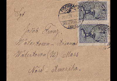 Foreign cover (1-20 g) from 20.11.1922 franked with 2 stamps a 20 Mark (=40 Mark)